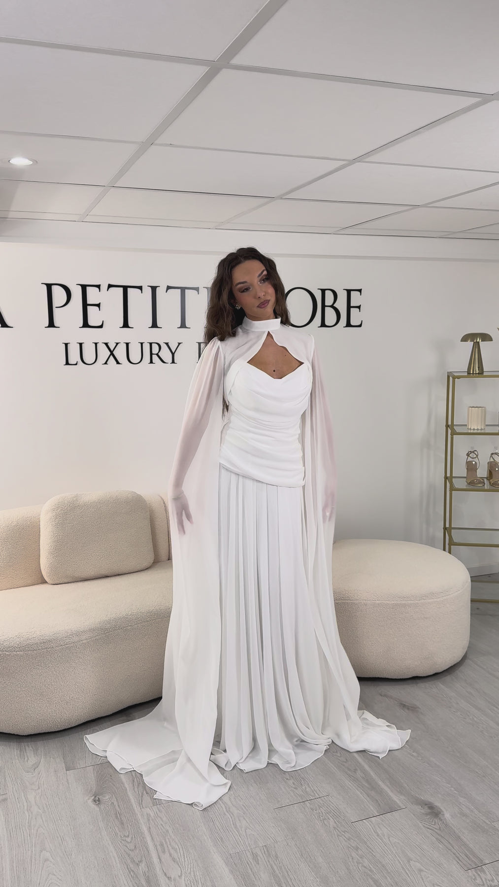 Ensuite, cette robe de mariée blanche se distingue par son boléro aérien. En effet, ce boléro est enlevable, ce qui permet de transformer le look en un instant. D’une part, avec le boléro, la tenue devient plus romantique. D’autre part, sans le boléro, la robe révèle un style plus épuré et moderne. De plus, les manches fluides ajoutent du mouvement à chaque pas. Ainsi, cette robe s’adapte à différents moments de la journée. Par conséquent, elle offre une grande polyvalence.