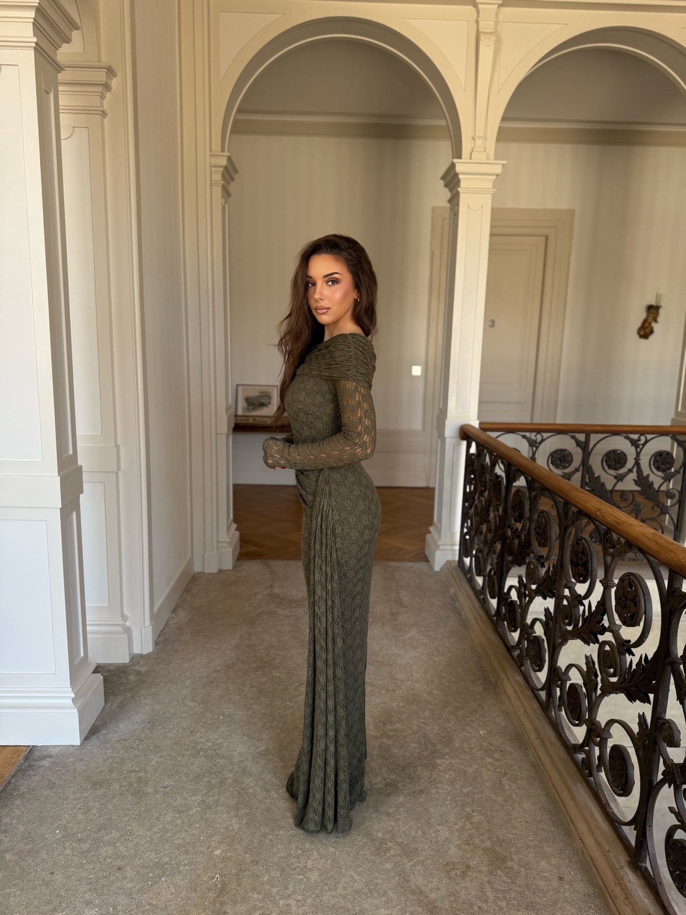✔️ Caractéristiques de la longue robe de soirée chic kaki