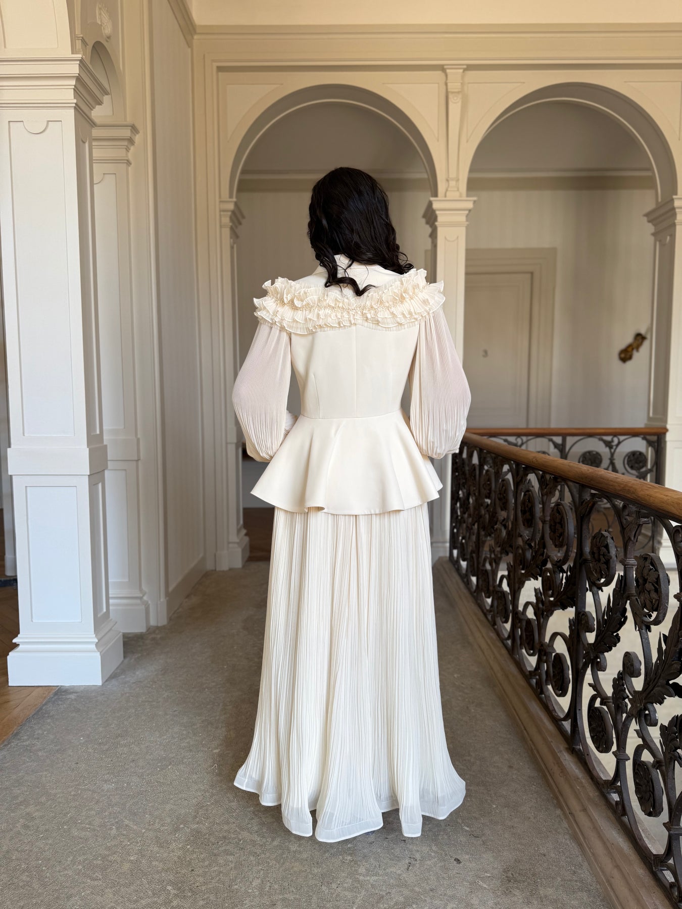 La mannequin mesure 1m72 et porte des talons de 12cm, et porte la taille 36/38.