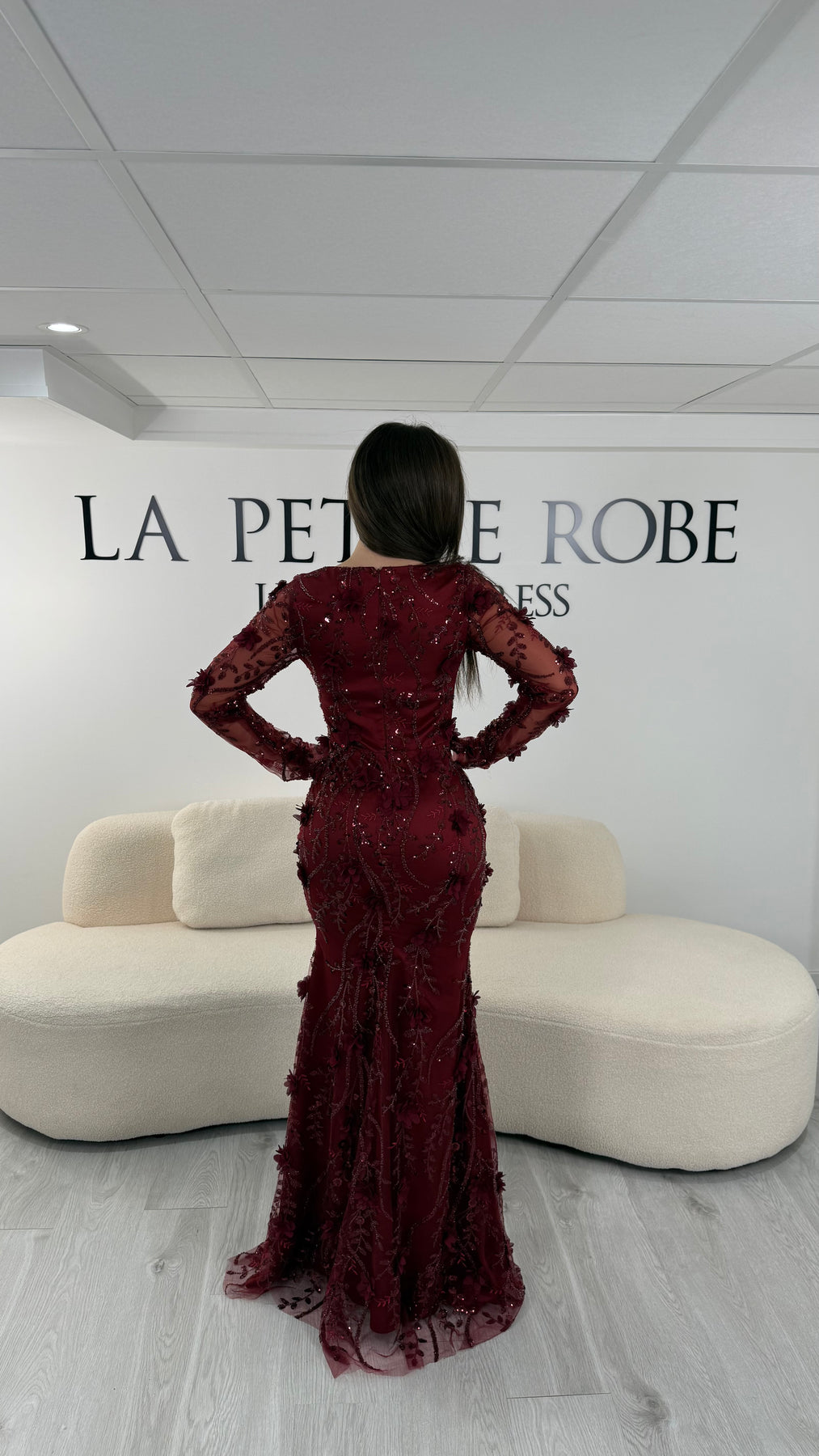 Hvorfor vælge denne bordeauxrøde aftenkjole?