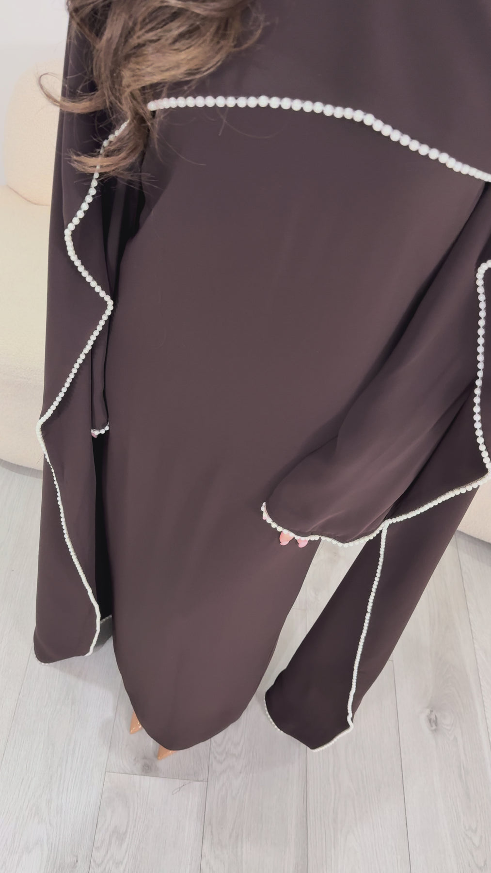 Enfin, cette robe est parfaite pour un mariage, une réception ou une soirée formelle. Sa couleur marron, à la fois sobre et tendance, se marie facilement avec des accessoires dorés ou nude. En somme, cette élégante robe modeste marron incarne l’équilibre parfait entre féminité, élégance et modestie.
