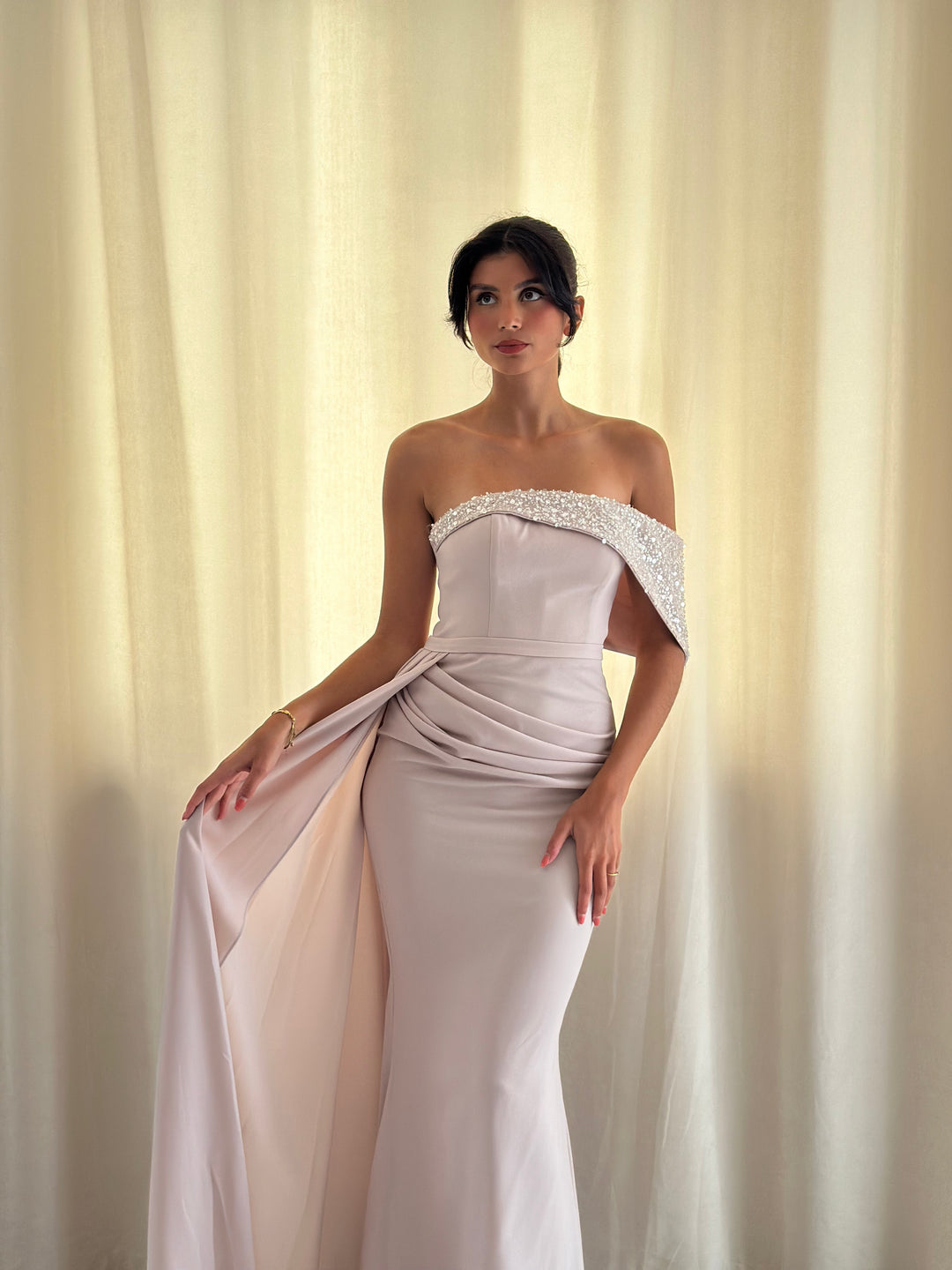 Ensuite, la robe de soirée beige élégante convient à toutes les grandes occasions.