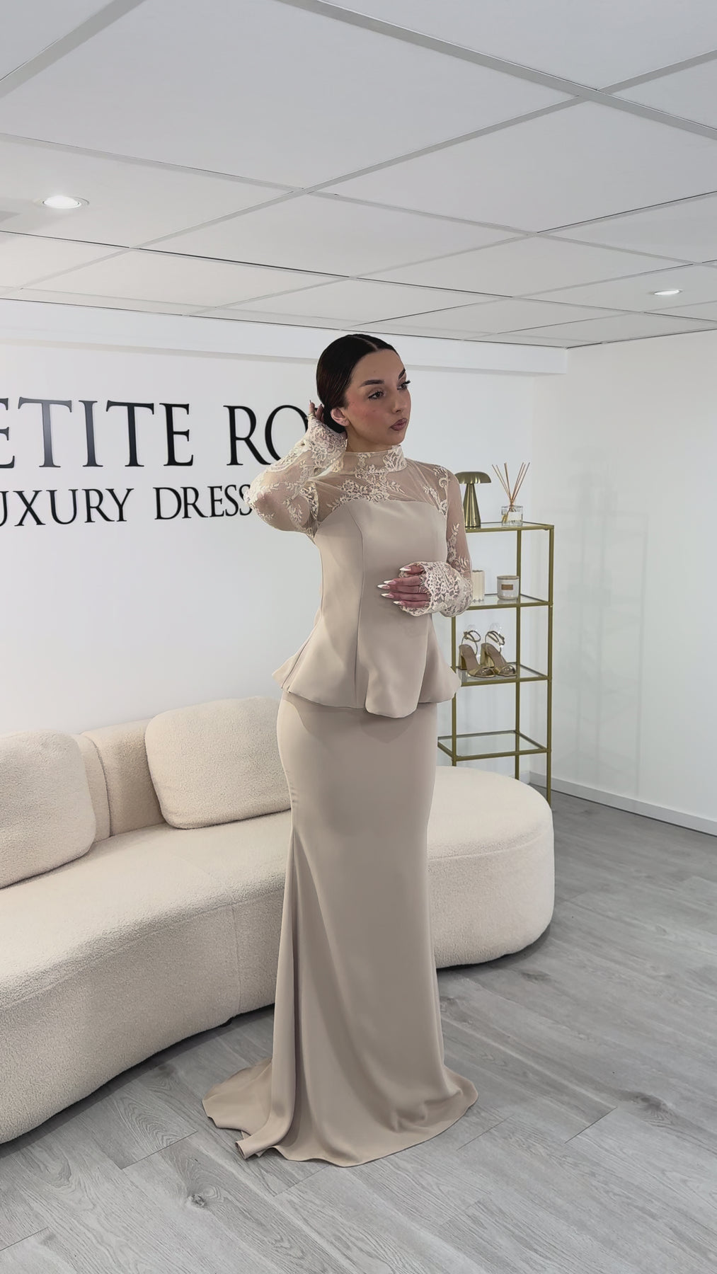 Thus, this beige evening dress It combines modernity, elegance and refinement. It is perfect for those who want a sophisticated and timeless outfit for a special occasion.
