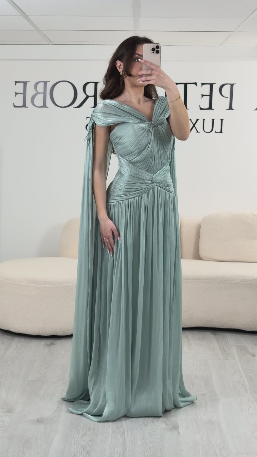 Un abito da sera verde chiaro, ideale per i vostri eventi.