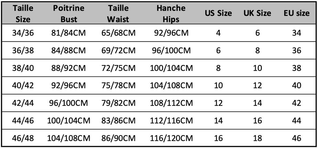 Attention à savoir, nos robes taillent petites, il faudra contrôler votre tour de taille avant toute commande.